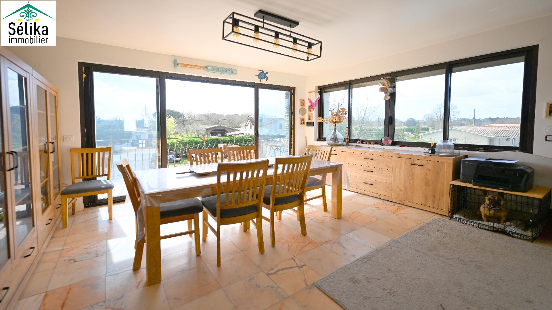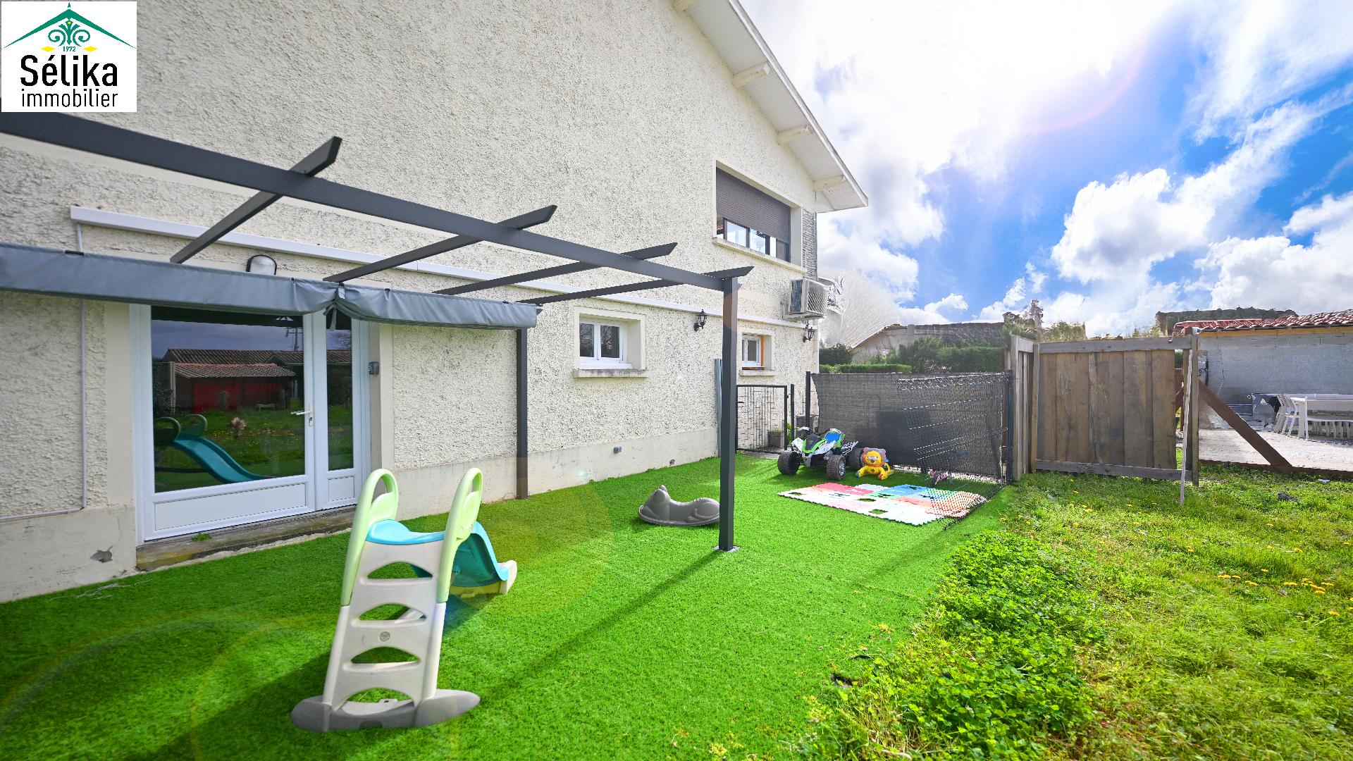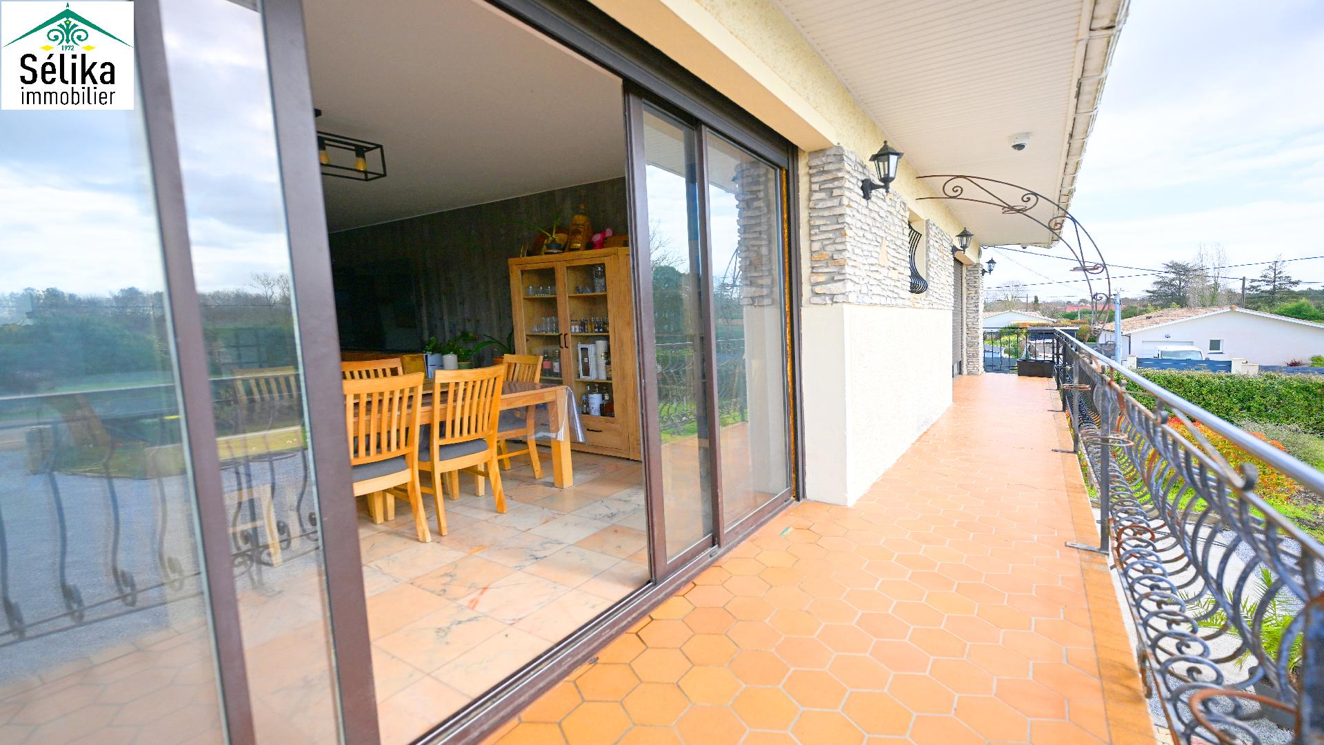 Découvrez cette grande villa idéale, pour une vie de famille ou résidence principale sur deux niveaux. En rez de chaussée un appartement T2 indépendant. Une autre pièce seule est également aménagée en chambre. Un vaste garage avec recharge pour 2 véhicules électriques. A l'étage le séjour s'ouvre plein sud sur un grand balcon avec un beau dégagement. Une cuisine séparée, 3 chambres, 1 salle de bain, 1wc séparé et de nombreux rangements complètent l'ensemble. Panneaux solaires, clim réversible par pompe à chaleur offrent confort et économie avec un très bon DPE : A ! Puit foré avec arrosage automatique. L'espace extérieur propose une piscine (10x4) avec de larges terrasses, agrémenté d'un aire de pétanque aménagé. En plus du grand jardin, de nombreuses places de parking dans la propriété offrent l'agrément de recevoir familles et amis. La photo non contractuelle depuis la piscine propose l'aménagement des travaux en cours par le propriétaire.